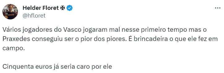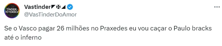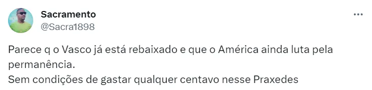 Porém, embora tenha cumprido as expectativas em seu início no Gigante da Colina, Praxedes vem oscilando no seu rendimento, levando a diretoria do Vasco a analisar sua contratação de maneira mais cautelosa.