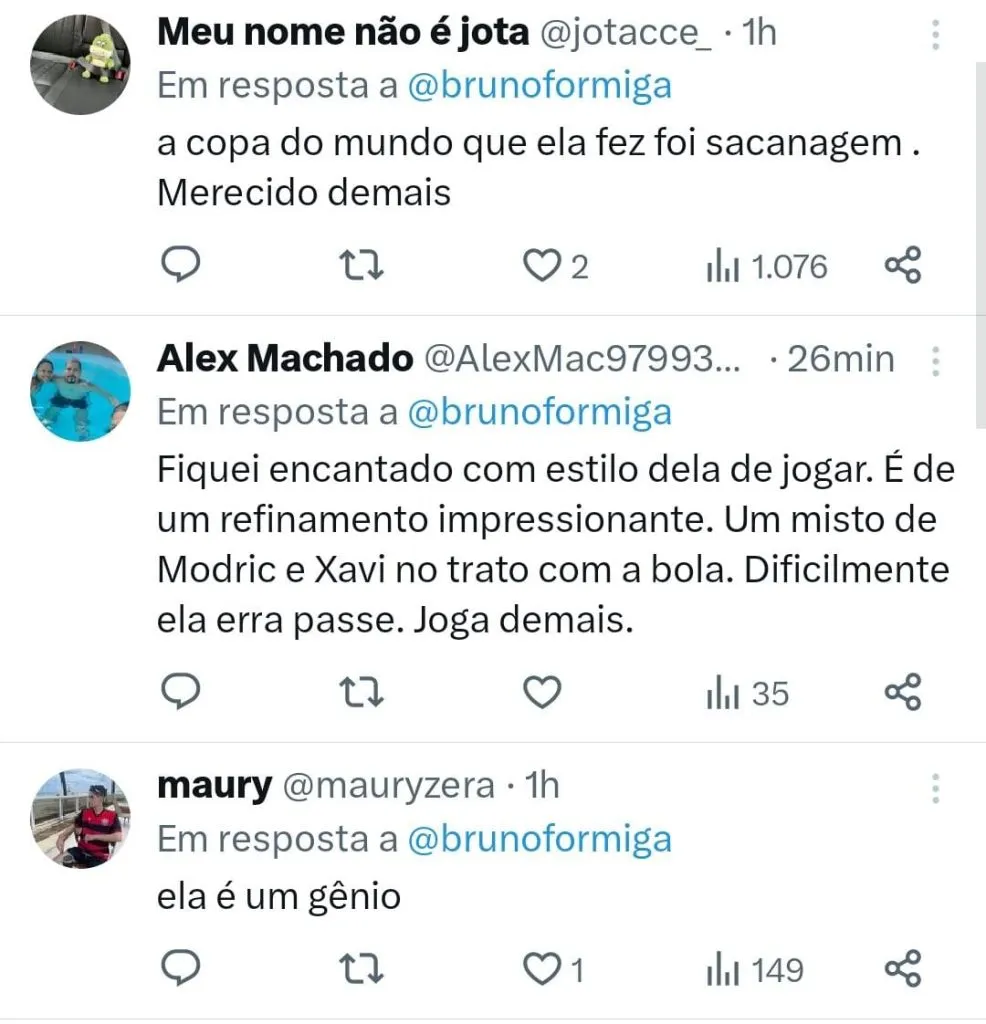Além de Bonmatí, a australiana Sam Kerr e a espanhola Salma Paralluelo fecharam o top 3 de melhores do mundo. A única brasileira que concorria ao prêmio foi a atacante ficou na 28ª colocação. O Barcelona foi eleito o melhor clube feminino do mundo.
