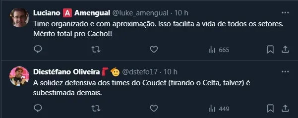 Além do gol contra de Biteco, Enner Valencia e Lucas Alario balançaram as redes e ajudaram a equipe a sair com os três pontos. Na coletiva, Lucho González, auxiliar técnico de Coudet, declarou o seguinte: