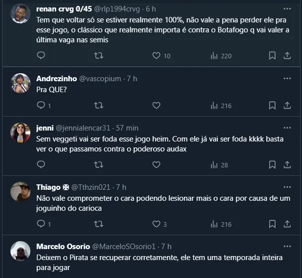 Isto é, apesar do indicado para a melhor recuperação ser mais um tempo fora de combate, a expectativa é que Vegetti passe por um teste na terça (13) e descubra suas reais condições.
