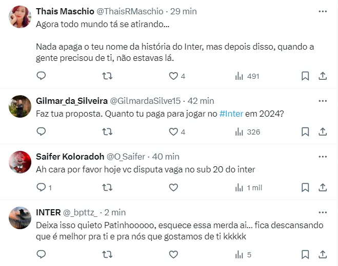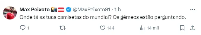 Reposta do jogador nas redes sociais. Foto: Rede Social X