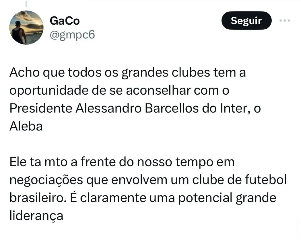 Alessandro Barcellos, ao ser questionado sobre a chance de fechar com um reforço para o Inter, afirmou estar bastante feliz com o plantel que tem a disposição, mas ponderou que o Colorado está sim no mercado da bola atrás de um novo arqueiro.