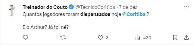Resultados tão ruins fizeram com que a diretoria do Coritiba revisse os jogadores que podem ser utilizados em 2024. Na tarde da última sexta-feira (8), o clube anunciou o encerramento do vínculo com sete jogadores do plantel.