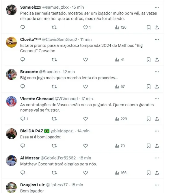 Matheus Cunha chamou atenção do Vasco após se destacar pela equipe profissional do Naútico. Nesta temporada, pelo clube carioca, ele fez nove jogos, três deles como titular.