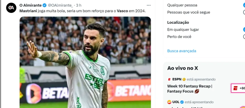 Seu contrato no América-MG vai até o fim de 2025, mas o rebaixamento do Coelho dificulta a permanência de Mastriani. Nos últimos meses, o Coelho recusou uma proposta de quase R$ 8 milhões do exterior por 60% dos seus direitos.