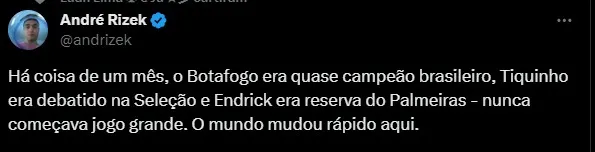 O Botafogo perdeu o mental e agora não sabe mais como reagir. A derrota para o Palmeiras e, anteriormente, para o Cuiabá mexeram com a animação dos torcedores e atletas. Ainda líder, mas sem futebol de líder.