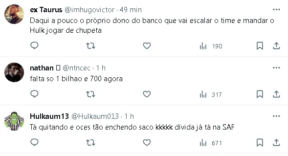 Além das dívidas com os bancos, o clube ainda enfrenta compromissos relacionados ao Profut, totalizando cerca de R$ 300 milhões, e a processos trabalhistas, somando cerca de R$ 200 milhões.