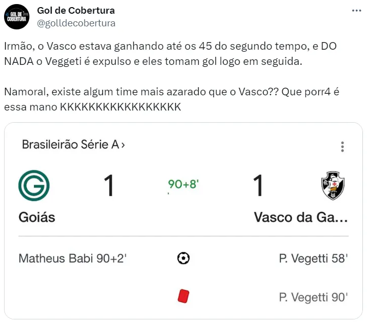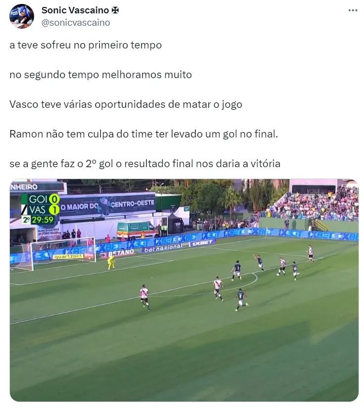Tudo ia bem para o Vasco no jogo contra o Goiás no Estádio da Serrinha, até que os donos da casa anotaram o gol do empate aos 47 minutos do segundo tempo, arrancando dois pontos do Cruz-Maltino.