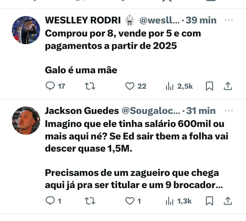 Inclusive, nesta quarta-feira (17), o presidente do Santos, Marcelo Teixeira, confirmou de vez o acordo com o Galo por Patrick. Teixeira afirmou que o meio-campista chega por empréstimo, mas com acordo de compra combiando para 2025.