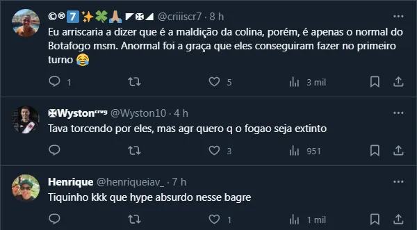 Enquanto isso, o Botafogo fez 16 pontos em 15 jogos, possuindo um aproveitamento de rebaixado no segundo turno e vendo os rivais encostarem. Tanto é que, a derrota para o Gigante da Colina ligou de vez o alerta nos rivais.