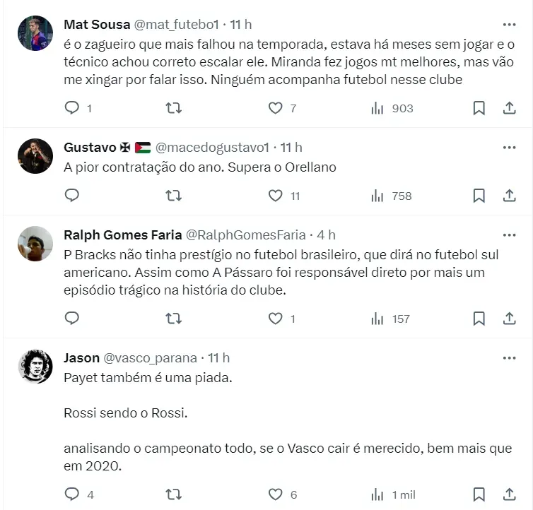 Por outro lado, Capasso voltou a ser titular e mostrou o motivo de não ser tão aproveitado em 2023. Afinal, os erros defensivos do jogo de ontem (28) podem custar a permanência na elite, já que o Vasco terá Grêmio e Red Bull Bragantino pela frente.