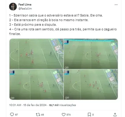 Na visão dele, Edenilson nao deveria ser crucificado, ponto para o treinador, não tem que crucificar o jogador, mas convenhamos, infelizmente ele ainda não mostrou o motivo da sua contratação. Em um quesito geral, o Atlético não apresentou um terço do que é esperado dele no coletivo, principalmente pela forma que terminou a temporada passada, é alarmante demais a situação.