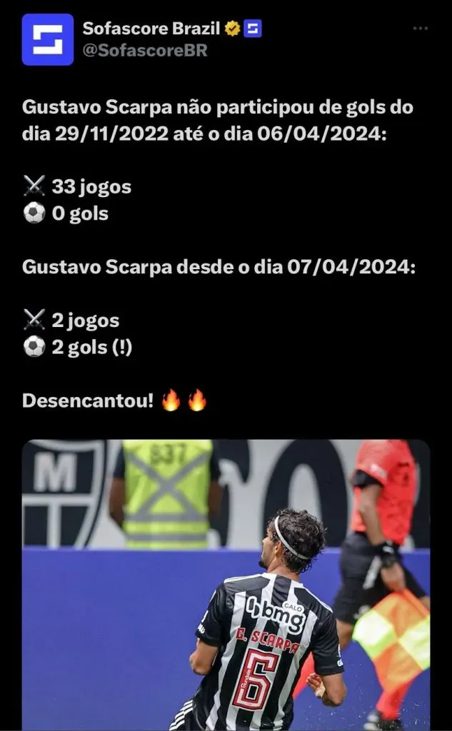 Agora, todos poderão ver Scarpa e cia no Brasileirão. O Atlético faz sua estreia no próximo domingo (14), contra o Corinthians, na Neo Química Arena, às 16h. Lembrando que da última vez que atuou no torneio, o jogador foi o destaque daquele ano pelo Palmeiras. Além disso, Scarpa pode ganhar mais um colega de elenco, após pedido de reforço do treinador.
