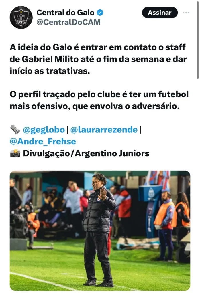 Diante disso, o ‘plano A’ é Gabriel Milito, treinador argentino que tem grande aprovação dos torcedores. O nome do comandante também é visto com bons olhos pela alta cúpula alvinegra.