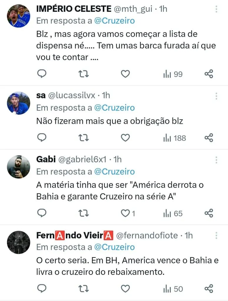 Confira a opinião da torcida