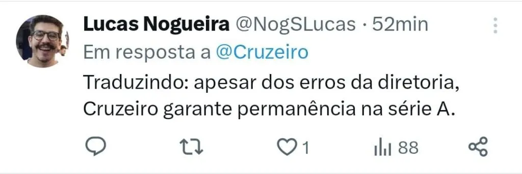 Apesar de comemorar o alívio pela permanência, o torcedor pode lamentar mais uma atuação bem abaixo do Cruzeiro, que demonstrou pouca criatividade, além da dificuldade em ser efetivo nas chances que criou.