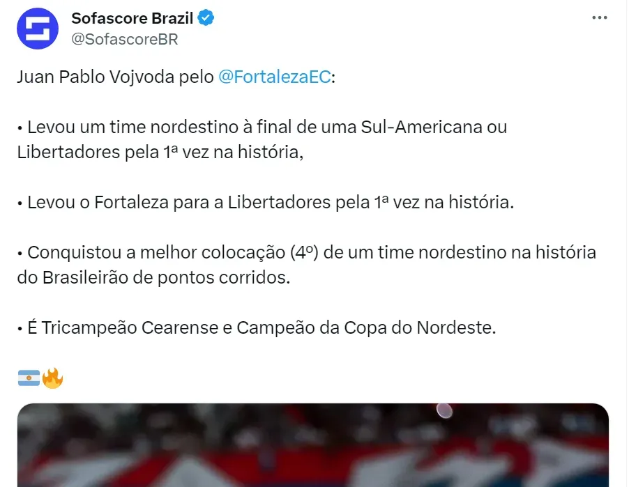 O time de Vojvoda já havia sido superior na Arena Neo Química Arena, no confronto de ida, mas acabou empatando por 1 a 1 em São Paulo. Mesmo sem Marinho, um dos principais jogadores da equipe, o Fortaleza partiu para o ataque desde o começo do jogo e não decepcionou a sua imensa torcida. De acordo com o Sofascore, só no primeiro tempo, a equipe da casa finalizou 14 vezes, contra 4 do adversário.