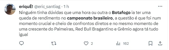 O jogo era de extrema pressão para o Glorioso, e agora com a derrota, aumentou ainda mais, pois o vice-líder Palmeiras, mesmo que com um jogo a mais, empatou com o Botafogo no número de pontos no campeonato.