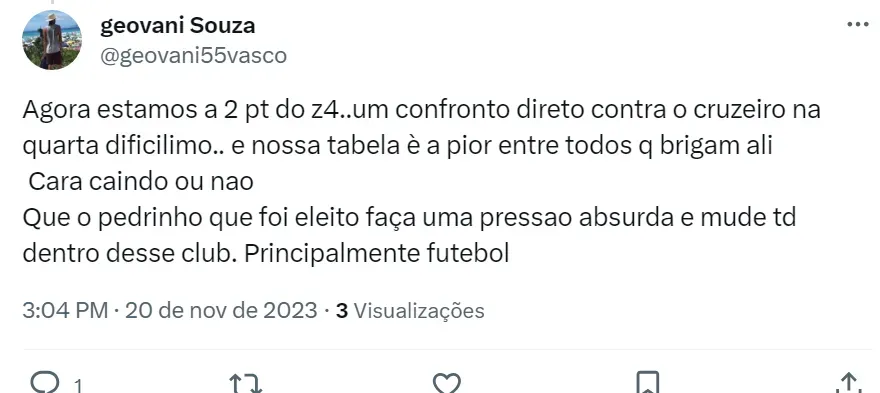 O que diz a torcida do Vasco na web