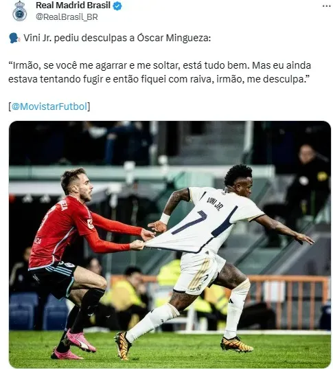 Na última partida do Real Madrid, em que o clube espanhol venceu o Celta de Vigo por 4 a 0, Vini Jr. levou outro cartão amarelo. Após o jogo, Carlo Ancelotti decidiu se pronunciar sobre o assunto.
