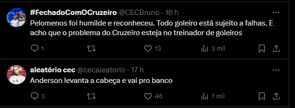 Com a saída de Rafael Cabral, que acertou com o Grêmio, Anderson ganhou a oportunidade de ser o titular. No atual elenco da Raposa, além do camisa 98, Léo Aragão e Gabriel Grando, que acabou de ser contratado, são as outras opções.