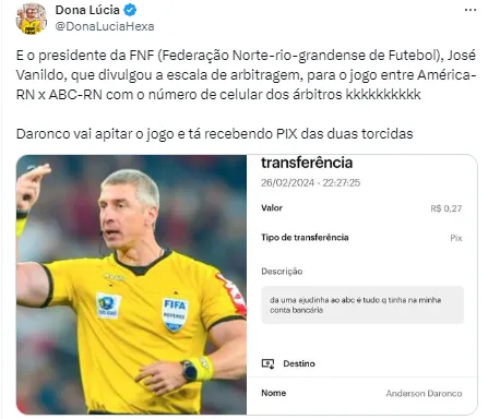 Em uma gafe cometida, o presidente da Federação Norte-rio-grandense de Futebol, José Vanildo, acabou expondo os dados pessoais do juiz. Logo após o ocorrido, ele se posicionou e se desculpou pelo erro.