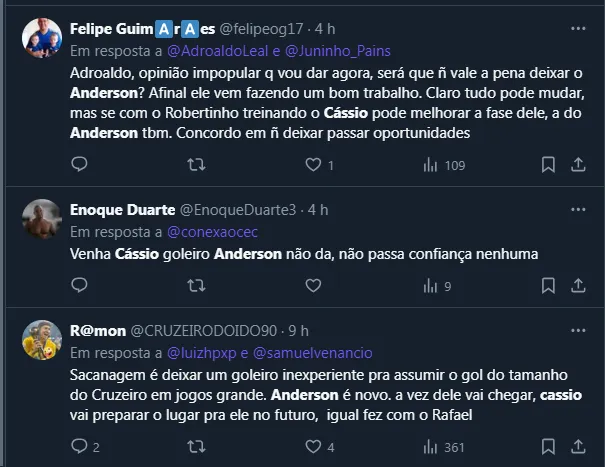 Posto isso, vale deixar claro que a negociação com Cássio deve seguir evoluindo ao longo dos próximos dias. O próximo compromisso do Cabuloso será nesta quinta-feira (16), às 21h, contra o Unión La Calera (CHL), no Mineirão.