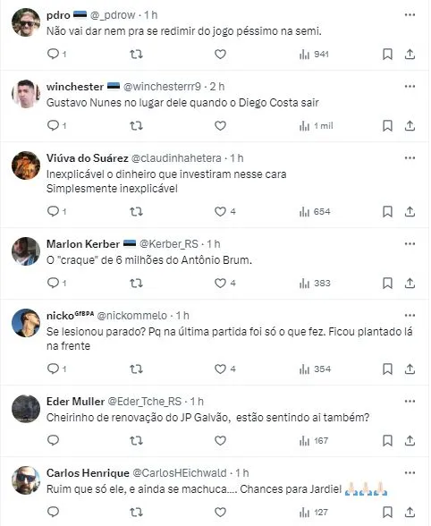 Com a ausência de André nas opções de Renato, JP Galvão será o reserva imediato de Diego Costa no setor ofensivo do Tricolor dos Pampas. Aliás, o camisa 19 demonstra um início impecável no time, com mais número de gols do que partidas disputadas.