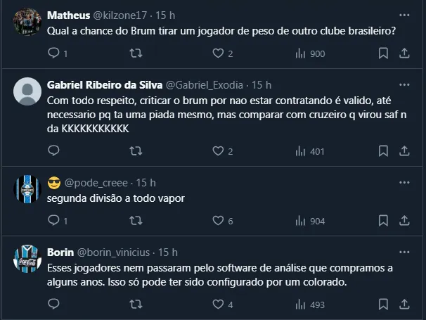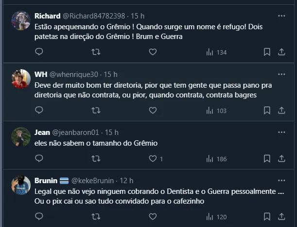 Não à toa, como seu contrato vai até o fim de junho e a torcida não quer a renovação, a contratação de Dudu pelo Cruzeiro gerou uma série de críticas pesadas à direção gremista.
