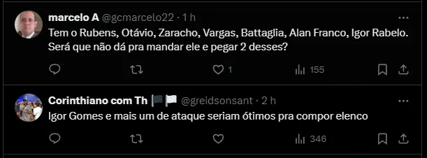 Ainda conforme divulgado pela ‘Itatiaia Esporte’, Matheus Mendes segue, até o momento, sendo atleta do Atlético Mineiro. Em contrapartida, o Corinthians negou qualquer negociação pelo volante argentino.