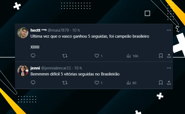 Isto é, caso vença o jogo contra o Atlético-MG, o Clube de São Januário vai chegar a marca de cinco vitórias seguidas no Brasileirão pela primeira vez desde 1997, ou seja, há 27 anos atrás.
