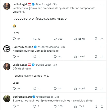 “A equipe do Corinthians, veio totalmente diferente. Engraçado, contra o Grêmio todo mundo faz uma guerra aqui na Arena. Eles vinham jogando com o mesmo time. Hoje mudou totalmente”, finalizou.