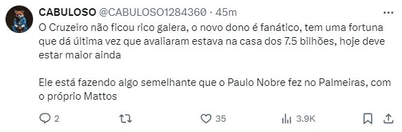 Entretanto, Mattos é um dirigente experiente, e tem boa habilidade de negociação. Com o projeto do Cruzeiro, os jogadores podem querer retornar ao Brasil para performarem por mais tempo.