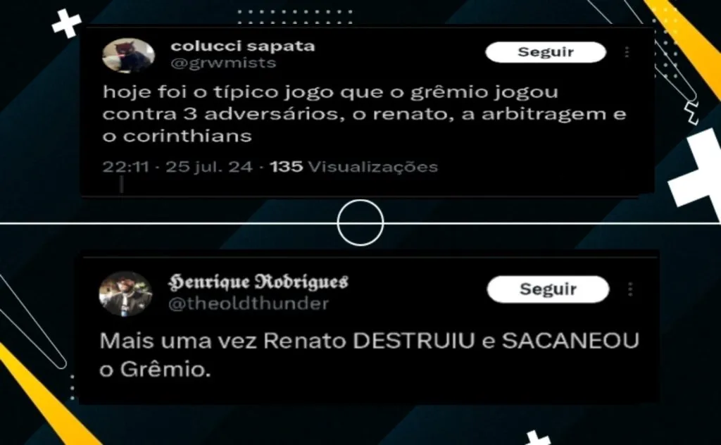 “Felizmente Renato não conseguiu nos deixar zerados. Esse cara presta um desserviço pro Grêmio e qualquer treinador minimamente sério, coloca o Grêmio perto dos 6 primeiros. O elenco tá muito bom, falta LÊ”, enfatizou outro torcedor.