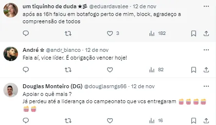 “Está claríssimo que foi gol legal. Acho que eles aí meteram a mão na questão da interpretação. Nem pensou, nem olhou muito. Sabemos que para a competição ficar mais atrativa tem que deixar o Botafogo mais próximo dos adversários.”