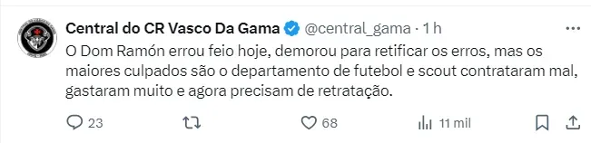 Nas redes sociais, a torcida se mostrou perplexa com o vexame protagonizado pelo Vascão. Um torcedor comentou que “Dom Ramon errou feio, demorou para retificar os erros, mas os maiores culpados são o departamento de futebol”.