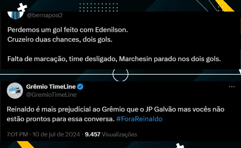 Após mais uma derrota do Grêmio torcida elege Reinaldo e Edenílson como vilões