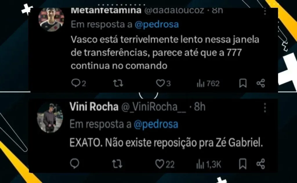 “Reposição do Zé Gabriel? Não tem quer ter reposição. É buscar alguém melhor do que os que já são titulares ou apostar na base. Em questão de prioridade, a zaga é muito mais preocupante hoje do que a posição de volante em um clube que tem dificuldades financeiras para contratar”, comentou Pedrosa no X/ antigo Twitter.