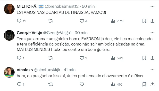 Na mesa do debate, constituída por Vampeta, Piperno e Bruno Prado, a maioria concordou que o Galo é o favorito para chegar à final. Do outro lado da chave, a aposta de Pilhado e dos demais membros é que o Flamengo chegue na final.