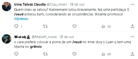 Josué, que também estará relacionado para o jogo contra o São Paulo no próximo sábado, expressou sua gratidão a todos que contribuíram para a sua ascensão no futebol. Ele afirmou que a partida é algo que ficará gravado em sua memória. Apesar da derrota, o jovem gremista demonstrou a mentalidade vencedora do clube ao mencionar que o Grêmio entra em campo com a determinação de vencer a cada jogo, e que a temporada ainda tem muito caminho a percorrer.