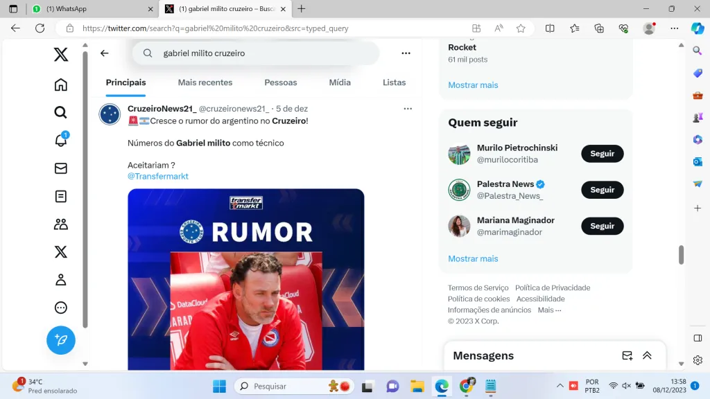 Foi esse o motivo, por exemplo, de o Athletico-PR não ter trazido nenhum dos dois argentinos. Só que Ronaldo quer definir o novo comandante celeste ainda em 2023.