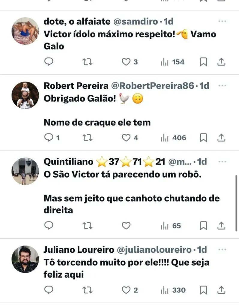 “O pessoal me acolheu bem. Estou treinando firme e forte para estar em forma para estrear. Quanto a concorrência, vai jogar quem estiver melhor, daqui a pouco chega o meu momento”, finalizou o novo jogador atleticano.