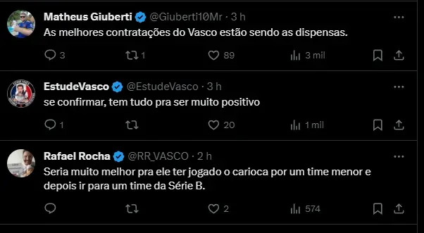 Além de chegadas, o clube acertou saídas de jogadores. Robson Bambu e Alex Teixeira não estarão no Vasco para a temporada de 2024. Em janeiro, com a abertura da janela de transferências, mais saídas devem acontecer.