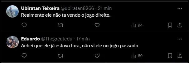 Segundo Leandro Behs, Aránguiz precisou fazer um pequeno procedimento ocular. Anteriormente, já havia sido diagnosticado uma pequena alteração. Portanto, é uma ausência programada.
