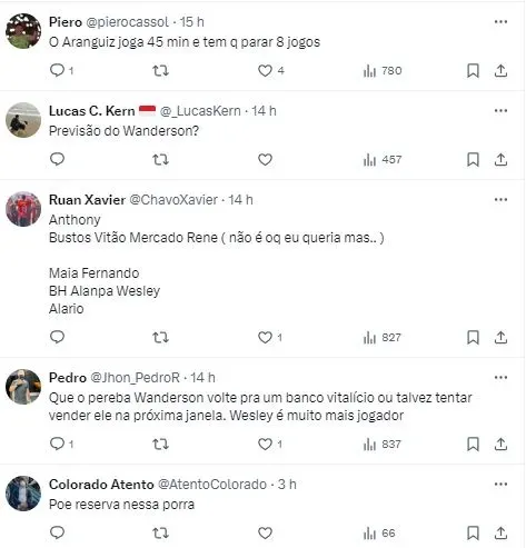 O volante foi cortado para que realize um trabalho “específico de carga” e por conta disso ficou em Itu, onde o Colorado está treinando, enquanto não pode utilizar o seu CT, danificado pela enchente em Porto Alegre. A preocupação com o volante se refere a possíveis futuros problemas físicos, por isso ele será preservado para turbinar sua preparação.