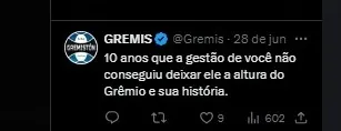 O que o Grêmio diz sobre ?
