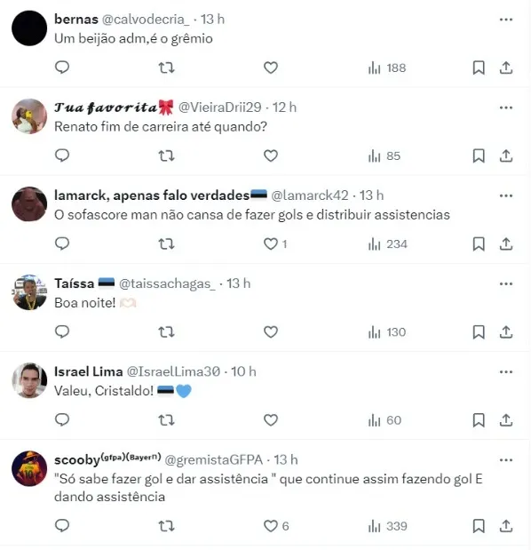 Um dos gols da partida foi marcado pelo seu meia. Cristaldo marcou e torcida do Grêmio fez pedido para Renato não tirar o jogador mais do time, já que ele foi um dos destaques do confronto.
