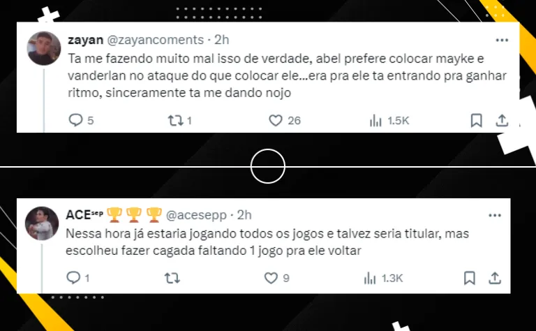 Abel o deixa fora de campo, e não dá mais oportunidades ao atacante para que possa mostrar o seu futebol e ajudar a equipe. Fato é que Leila Pereira não deseja mais o jogador no Alviverde.