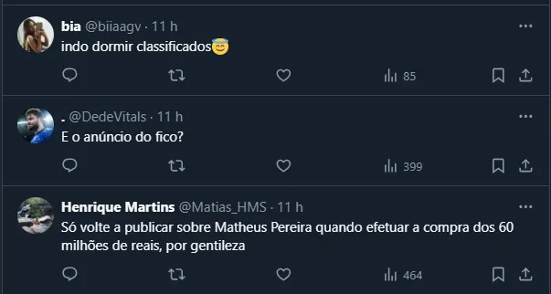 “O Matheus Pereira é um craque, todo mundo sabe disso, ele demonstra todo o seu valor dentro de campo. Temos que desfrutar dele, aproveitar da capacidade dele”, disse o atacante que já recebeu duas assistências do camisa 10 no ano.