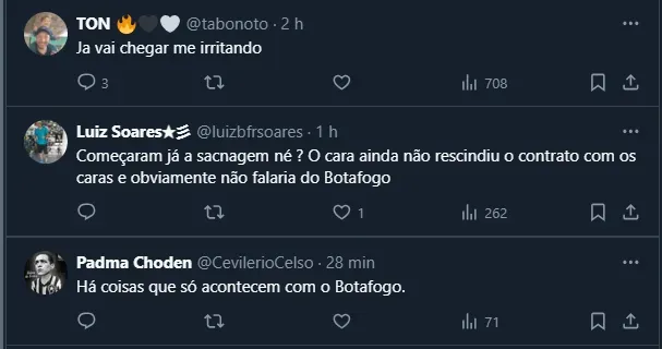 Além de não querer falar sobre o tema, Artur foi irônico ao falar do Glorioso: “Conheço muita coisa, não só do Botafogo, mas também do Campeonato Brasileiro, da própria cidade (Rio de Janeiro), porque sou um homem do futebol e tenho que estar preparado para poder conhecer todas as realidades”, disse.